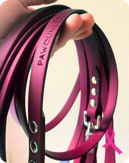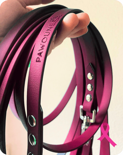 Longe rose chien en type Biothane® 16 mm – Octobre Rose – Papatte Rose